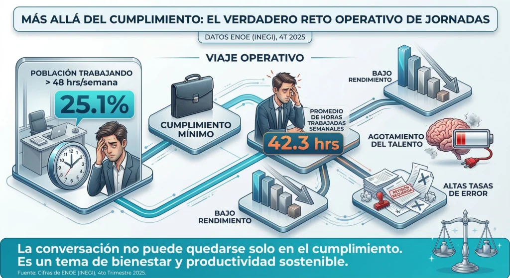 En otras palabras, una parte importante de la operación en México sigue descansando en esquemas de trabajo extensos. Por eso, el reto de fondo no será únicamente “cumplir con las 40 horas”, sino sostener resultados con una estructura distinta. Esto implica responder preguntas incómodas pero necesarias:
