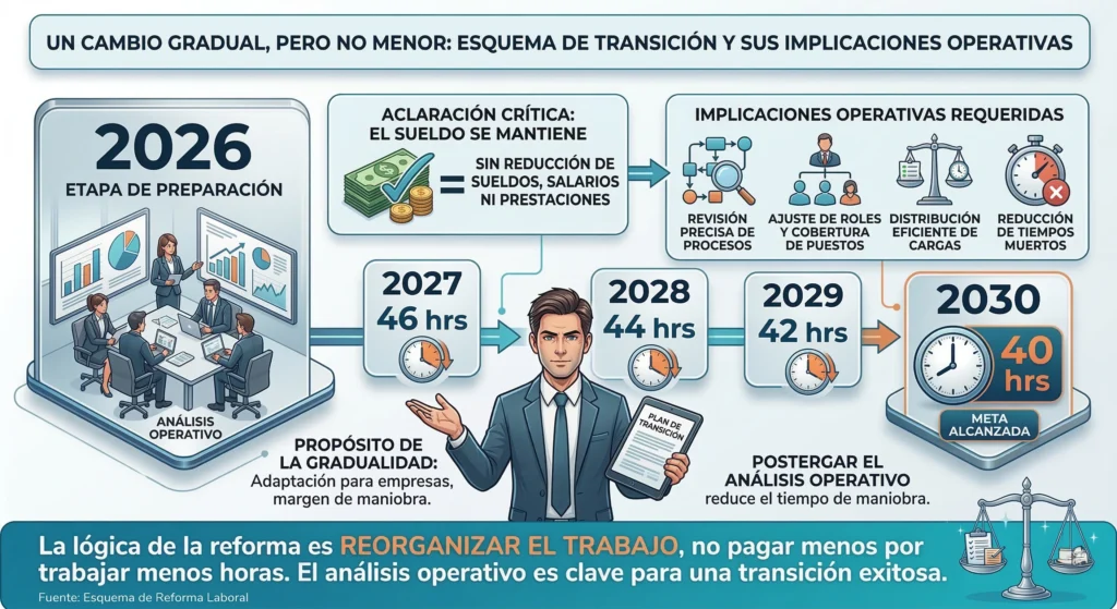 La reducción de jornada toca reclutamiento, nómina, supervisión, cumplimiento, clima laboral, liderazgo y continuidad operativa. Es una decisión transversal que impacta la operación completa.